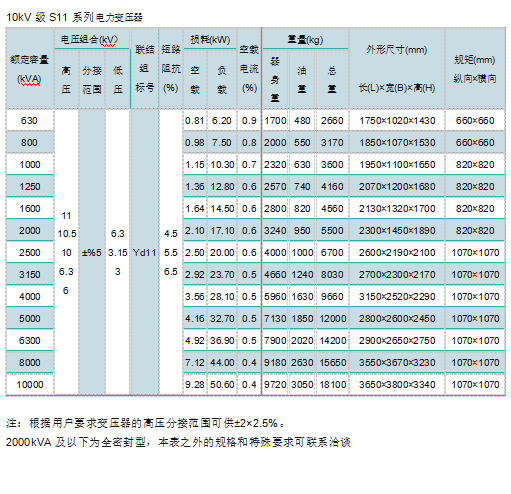 油浸式變壓器主要參數(shù)